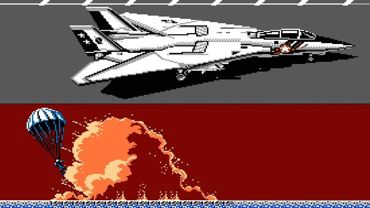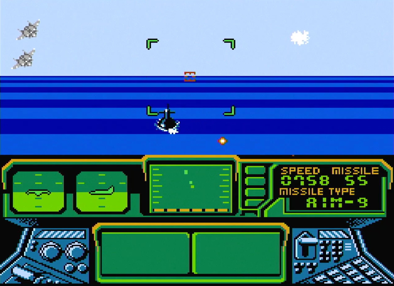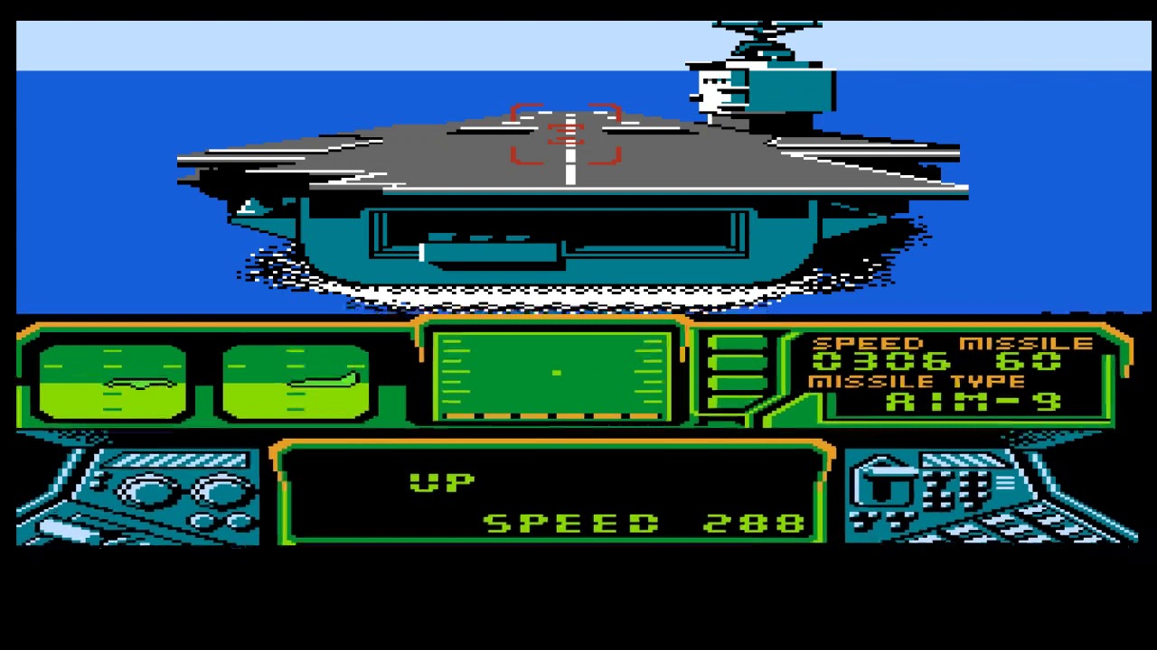 Wenig überraschend handelt es sich bei "Top Gun - Second Mission" um die Fortsetzung von "Top Gun", welches 1987 erschien. Das Spiel wurde etwas überarbeitet, es gibt bessere Grafik, schnelleres Gameplay und besseres Handling. Das heißt allerdings nicht, dass es sich bei "Second Mission" um ein gutes Spiel handelt. "Bessere Grafik" heißt zum Beispiel einfach nur, dass es ein paar mehr Details gibt, aber die Grafik von Teil 1 war so hässlich, dass auch Teil 2 kein sehr viel besseres Bild abgibt. Das Spiel bietet einen einfarbigen Himmel und zwei unterschiedliche Farben am Boden: dunkelblau und nicht ganz so dunkles blau über Wasser, braun und hellbraun über Land... aber es ist immerhin ein Upgrade gegenüber dem komplett einfarbigen Untergrund aus Teil 1.