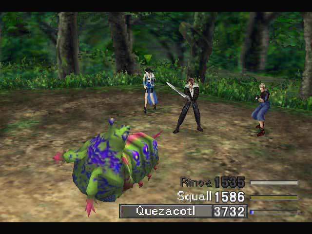 Zu allem Überfluss wurde der Geschichte noch eine Liebesbeziehung zwischen Rinoa und Squall aufgezwungen, die an vielen Stellen einfach nur deplaziert wirkt. So wird z.B. in einer Szene der Balamb Garden angegriffen, hunderte Schüler sind in Gefahr, und die Gruppe ist NUR daran interessiert, Rinoa aus einer misslichen Lage zu befreien. Außerdem ist der Hauptcharakter ein solch ängstlicher Emo, dass man sich fragt, was ein eigentlich lebenslustiges Mädchen wie Rinoa eigentlich an ihm findet. Aber gut, das war der damalige Zeitgeist und als "ängstlicher Teenager" konnte man sich damals sogar mit Squall identifizieren. Heutzutage ist es allerdings eher peinlich.