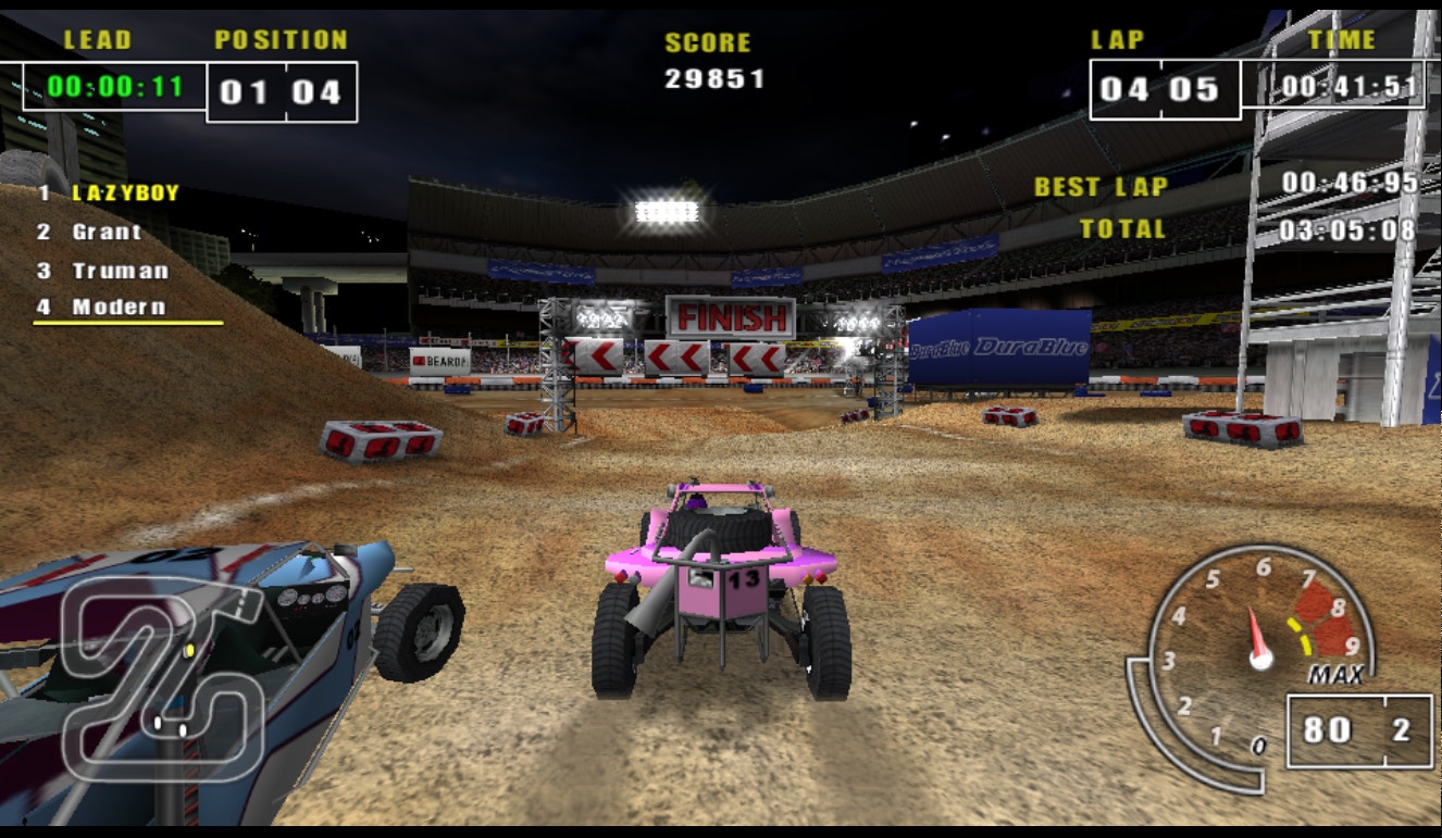 Das Spiel bietet eine Vielzahl von Fahrzeugen, darunter ATVs, Motocross-Bikes und Buggys, die jeweils ihre eigenen Fahreigenschaften haben. Die Strecken sind gut gestaltet, mit einigen anspruchsvollen Strecken, die sich mit relativ simplen Kursen abwechseln.